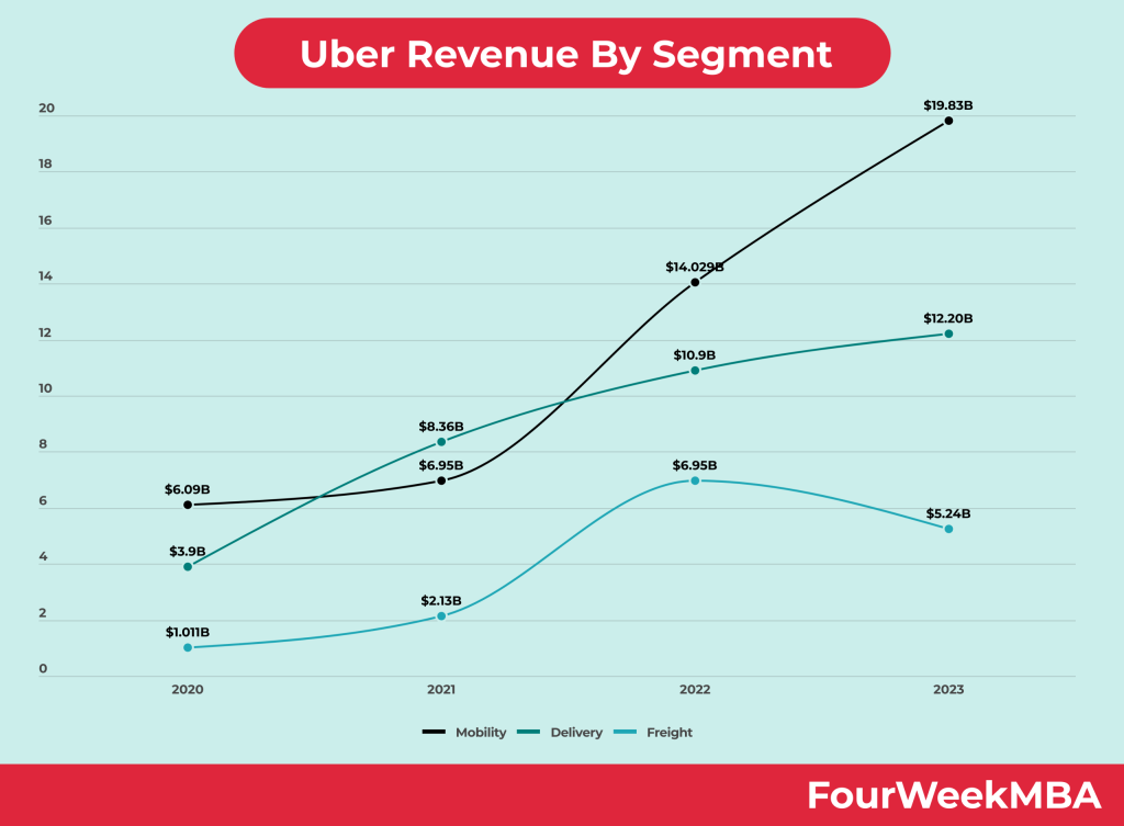 In 2023, total revenue reached $37.28B, with Mobility at $19.83B, Delivery at $12.20B, and Freight at $5.24B. Operating profit hit $1.08B in Q2 2024, driven by scale and efficiency. The model relies on network effects: more users attract more drivers, reducing costs.